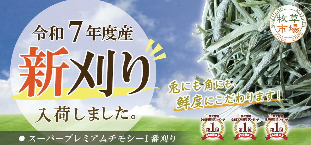 楽天市場 令和元年度産新刈り 牧草市場スーパープレミアムチモシー1番刈り牧草 10kg 2個口 うさぎ モルモットなどの牧草 業務用 シングルプレス 31年度産新刈り 牧草マーケット