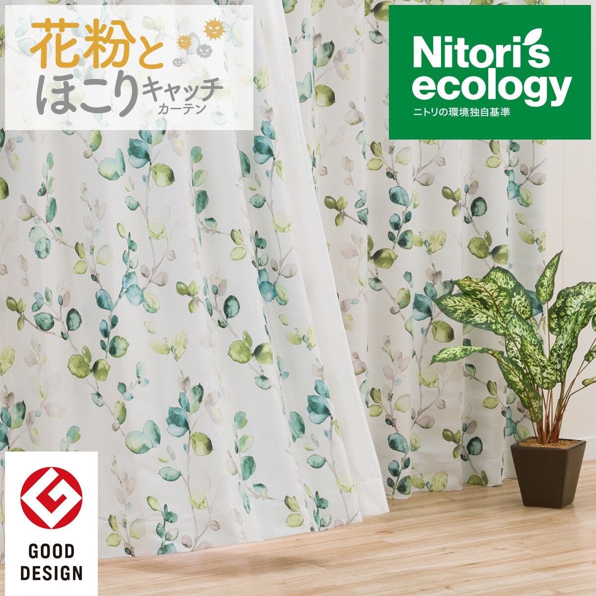 遮光2級 遮熱カーテン レモンリーフ グリーン 通販 ニトリネット 公式 家具 インテリア通販