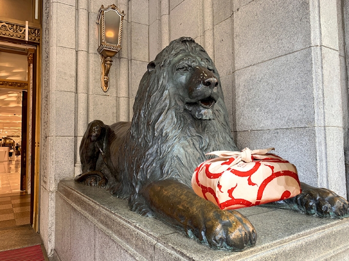 日本橋三越のライオン像と風呂敷包み ミルキーの今日もブログ日和