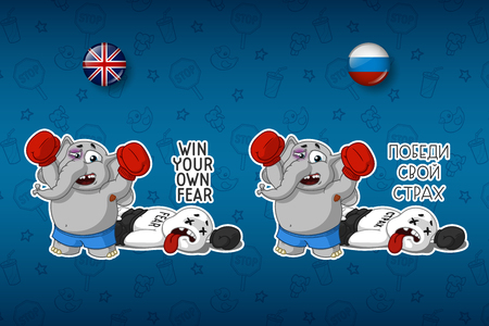 象かわいいニックネーム 英語とロシア語のステッカーの大きなセット ベクトル 漫画のイラスト素材 ベクタ Image